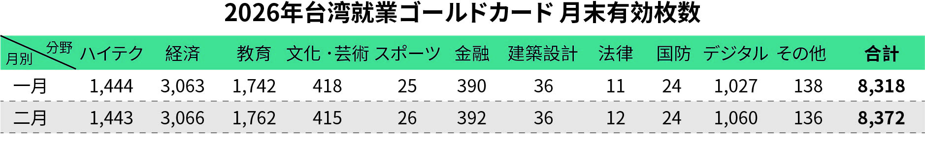 2026年2月28日現在の有効就業ゴールドカードは8,372件、累計許可は15,924件