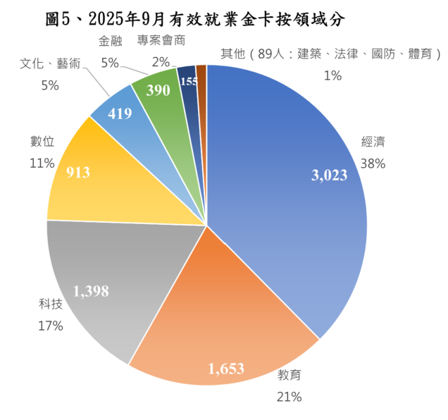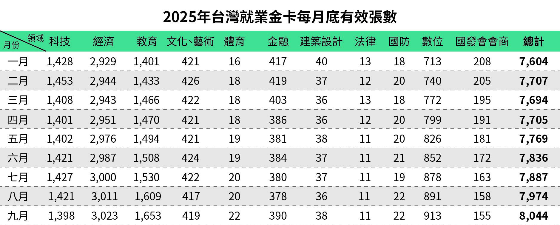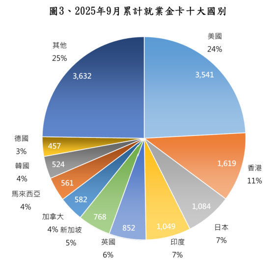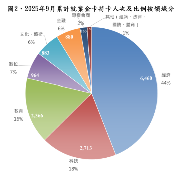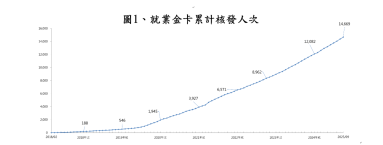 114年9月30日之有效就業金卡為8,044人次,累計許可為14,669人次。