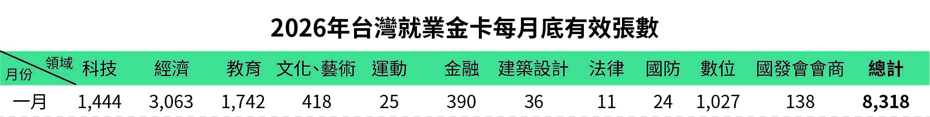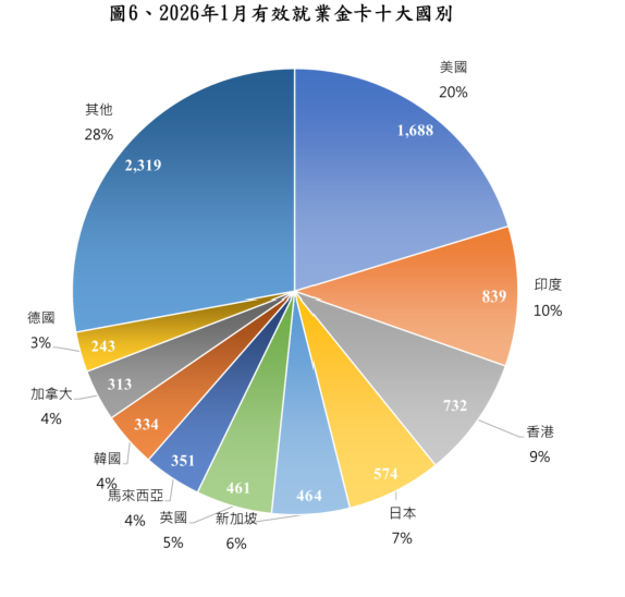 2026年1月就業金卡最新核發數字