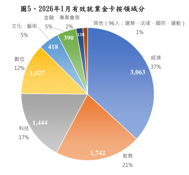115年台灣就業金卡有效按領域分-1月